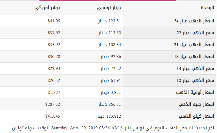 Non classé أسعار الذهب اليوم 20/04/2019215 مشاهدة متوسط اسعار الذهب اليوم بأسواق المال في تونس بالدينار التونسي شاهد أيضاً Non classé • أحداث عامة • أخبار • متفرقات سوسة : ايقاف شخص صادرة في شأنه 19 منشور تفتيش Non classé توصيات صارمة من الإتحاد الإفريقي لكرة القدم Non classé الحلقة 13 لحياة أجمل Non classé ديربي الساحل بين النجم الساحلي والاتحاد المنستيري بصافرة نضال اللطيف Non classé تراجع مبيعات السوق الموازية للسيارات بعد مرور سنة على قانون منع التفويت في الـ”FCR” Non classé • أحداث عامة • أخبار • متفرقات موقعMiddle East Eye:وثيقة سرية تتحدث عن انقلاب دستوري في قصر قرطاج Non classé كرة القدم: تحديد موعد انطلاق الموسم القادم لبطولة الرابطة المحترفة الأولى Non classé جامعة الثانوي تقرّر استئناف الدروس غدا مع مواصلة حجب الأعداد Non classé الرابطة المحترفة الثانية: تعيينات حكام مباريات الجولة الثانية Non classé التدخين يحرم الشخص من تمييز الألوان Non classé • أحداث عامة • أخبار • متفرقات بداية من الغد: إجراءات جديدة تهم المسافرين الوافدين عبر الرحلات البحرية Non classé سوسة : إتهام معلم بالتحرش بفتاة أثناء اعطائها دروس خصوصية Non classé 45 حالة طلاق يوميا في تونس..المشاكل الجنسية و”الفايسبوك” في قفص الاتهام Non classé النفيضة : اكتظاظ أمام مكتب البريد والأمن يتدخل Non classé المنستير-الزرمدين: استرجاع 134 هكتار من الأراضي الدولية