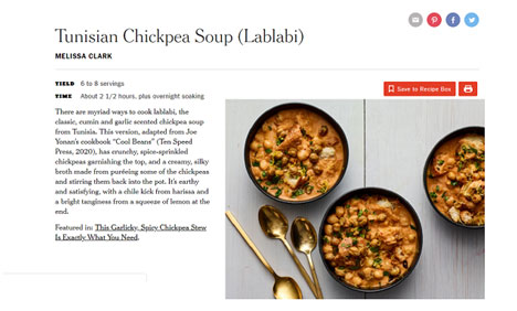 و نشرت الصحيفة الأمريكية، صورة لأحد أشهر الأطباق التونسية “اللبلابي” مرفوقة بطريقة تحضيره، ضمن قائمة لمجموعة من وصفات الأكلات من مختلف دول العالم.