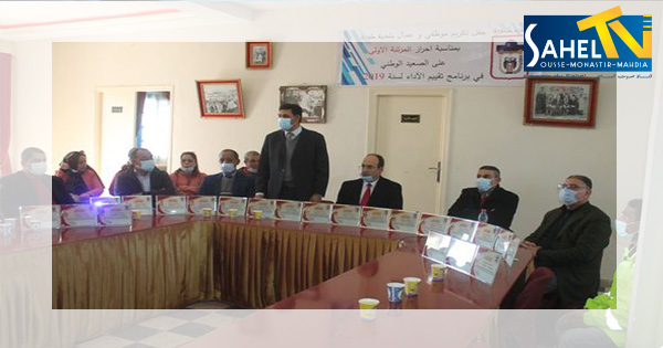 و بمناسبة حصولها على المرتبة الأولى على الصعيد الوطني ضمن برنامج تقييم الأداء، انتظم بعد ظهر اليوم الاربعاء 05 جانفي 2022 بمقر بلدية طوزة حفل تكريم لموظفي و عمّال بلدية طوزة بإشراف السيد طارق البكوش المعتمد الأول المكلف بتسيير شؤون ولاية المنستير بحضور السادة محمد القرماسي معتمد قصيبة المديوني بالنيابة و فؤاد الفرجاني رئيس بلدية طوزة و الياس شعبان رئيس دائرة الشؤون البلدية بالولاية و المنجي الهذلي كاتب عام بلدية طوزة و الياس موسى رئيس منطقة الأمن الوطني بجمال و أعضاء المجلس البلدي بطوزة.