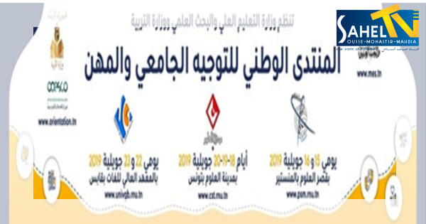 انطلقت صباح اليوم الاثنين 15 جويلية 2019 بقصر العلوم بمدينة المنستير المنتدى الوطني للتوجيه الجامعي و المهن