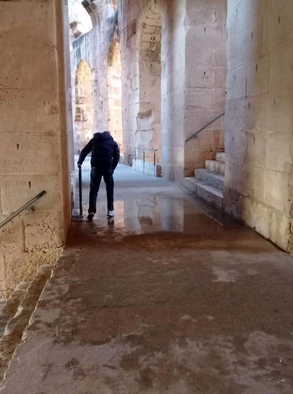 نشرت الصفحة الخاصة بجمعية “الجم السياحية الثقافية ,التراث والتنمية” على منصة التواصل الإجتماعي فايسبوك صورا حديثة تظهر بركا عديدة من المياه داخل المسرح الأثري بالجم وتأثر بعض أعمدته بسبب غياب أشغال الترميم والصيانة.