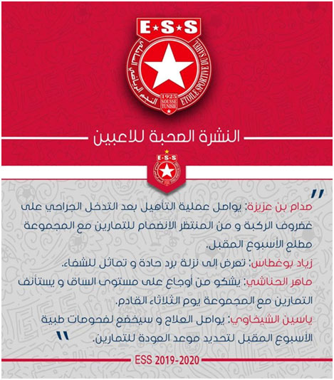 و في ما يلي الحالة الصحية للاعبين المصابين في النجم: