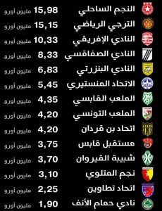 وفي ما يلي الترتيب الكامل لاندية الرابطة المحترفة الاولى حسب القيمة التسويقة للاعبيهم :