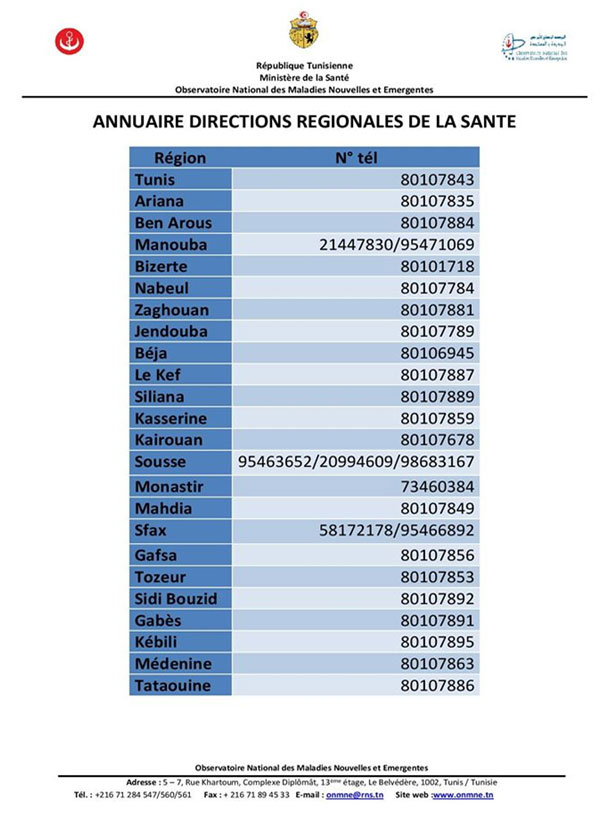 دعا المرصد الوطني للأمراض الجديدة والمستجدة، كل المسافرين الوافدين إلى تونس من بلدان مصنفة في القائمة البرتقالية أو الحمراء، إلى الاتصال بالإدارات الجهوية للصحة التي يعودون إليها بالنظر من أجل الحصول على موعد لرفع عينة من أجل تقصي فيروس كورونا.