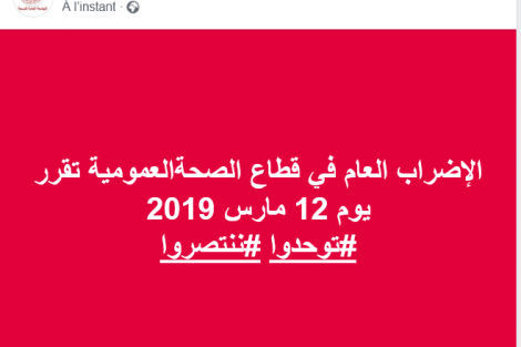 أحداث عامة رسمي :إضراب عام في قطاع الصحة يوم 12 مارس 22/02/201968 مشاهدة أعلنت منذ قليل الجامعة العامة للصحة التابعة للاتحاد العام التونسي للشغل، إقرار إضراب عام في قطاع الصحة يوم الثلاثاء 12 مارس 2019. وجاء قرار الإضراب بعد تعثر جلسة المفاوضات بين الجامعة العامة للصحة ووزارة الصحة اليوم. المصدر الجامعة العامة للصحة شاهد أيضاً أحداث عامة رئيس بلدية سوسة : عملية إزالة الأكشاك مازالت متواصلة أحداث عامة • أخبار • متفرقات حجاج بيت الله ينفرون إلى مزدلفة بعد الوقوف على صعيد عرفات أحداث عامة • أخبار ما الذي يمكن فعله لزيادة ثقة الطفل بنفسه؟ أحداث عامة • أخبار • متفرقات وزير التربية: جاهزون لإجراء الامتحانات في أفضل الظروف أحداث عامة • أخبار • متفرقات المهدية: المدير الجهوي للصحة يكشف موعد افتتاح قسم الإستعجالي الجديد أحداث عامة سوسة: رؤساء البلديات يتفقون على إحداث جمعية من أجل إنجاز مشاريع مشتركة لفائدة الجهة أحداث عامة سوسة: حوالي 1000 عائد من الخارج تم إيواءهم بالنزل على نفقاتهم الخاصة منذ 3 جوان الفارط أحداث عامة • أخبار • متفرقات وديا: النجم الساحلي ينتصر على حساب امل حمام سوسة… أحداث عامة • أخبار • متفرقات قريبا: وصول جرعات جديدة من لقاحات “استرازينيكا” و “فايزر” أحداث عامة الاتحاد العام لطلبة تونس يستنكر الاعتقالات في صفوف الطلبة المحتجين أحداث عامة • أخبار • متفرقات جلسة عمل لمتابعة الفيروسات التي اصابت شتلات الفلفل ببنبلة أحداث عامة سوسة..القاء القبض على عصابة مختصّة في سرقة المنازل وعمليات السلب أحداث عامة • أخبار اليوم تبدأ “جمرة التراب”… ماهي خصائصها ؟ أحداث عامة • أخبار • متفرقات محسن حسن: الضغط الجبائي في تونس الأعلى افريقيا أحداث عامة رسمي : هلال الشابة يتعاقد مع المدرب بارتران مارشان