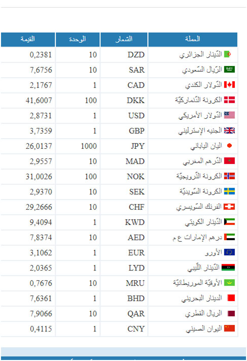تشير أسعار صرف العملات في تونس لهذا اليوم الجمعة 21 فيفري 2020، إلى أن سعر صرف الاورو الاوروبي بلغ 3.10 دينار تونسي، فيما بلغ سعر صرف الدولار الأمريكي 2.87 دينار تونسي.