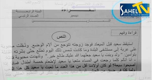 أكّد المندوب الجهوي للتربية بسوسة نجيب الزبيدي لموزاييك، أنّ المنشور الذي يشير إلى التقييم في مادة القراءة مستوى رابعة إبتدائي والذي تم تداوله على مواقع التواصل الإجتماعي وأثار موجة من السخرية في صفوف نشطاء هذه المواقع، قديم جدا ويعود إلى ما لا يقل عن 15 سنة .