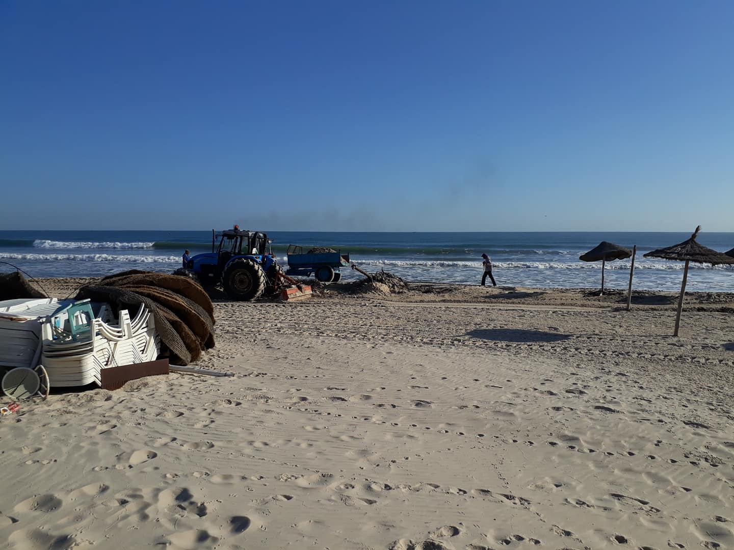 و قد انطلقت صباح الجمعة 28 سبتمبر الجاري حملة جهوية باذن من اللجنة الجهوية لتفادي الكوارث و مجابهتها و تنظيم النجدة و تم تسخير جرافات و شاحنات و عدة أعوان تنظيف لرفع الفضلات التي افرزها البحر على الشاطىء.