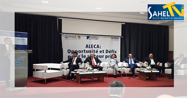 اتفاقية التبادل الحر «أليكا» كان محور ندوة نظمها الإتحاد الجهوي للصناعة والتجارة والصناعات التقليدية بسوسة بمقر الإتحاد أشرفت عليها المديرة العامة برئاسة الحكومة لوحدة التصرف حسب الأهداف الخاصة بالمفاوضات فاطمة الوسلاتي صحبة رئيس الجامعة الوطنية للصناعات الغذائية شهاب سلامة ونائب رئيس الجامعة الوطنية للخدمات نبيل بالعم ورئيس الاتحاد علي بن يحيى.