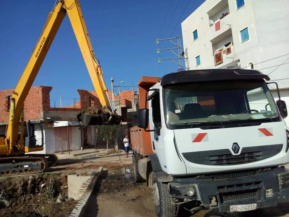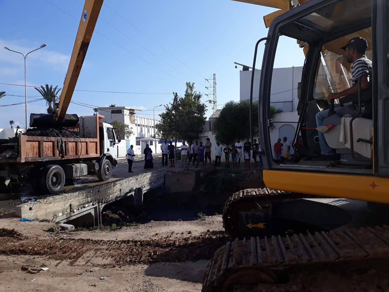 و انطلقت أشغال رفع الأتربة و الأوساخ التي تجمعت بوادي سيدي قاسم و سدمت المنشأة المائية التي تتوسطه مساء يوم الأحد 23 سبتمبر 2018 على أن يتم نقلها إلى المصب المراقب من طرف مصالح البلدية التي وفرت عدد 2 شاحنات للغرض و بعد الإنتهاء من عمليات الجهر و الصيانة بالوادي المذكور ستتواصل الأشغال لاحقا بواد الخروب .