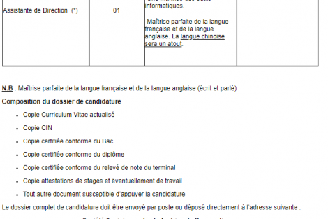 للمشاركة يمكن إيداع مطلب الترشح مباشرة بالشركة أو إرساله عن طريق البريد على العنوان التالي :