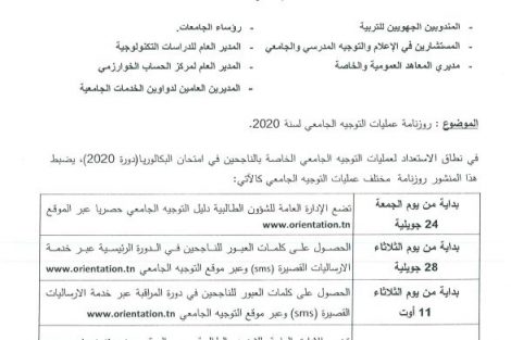 أحداث عامة لتلاميذ الباكالوريا: روزنامة التوجيه الجامعي 05/07/2020201 مشاهدة نشرت وزارتا التربية والتعليم العالي مؤخرا روزنامة عمليات التوجيه الجامعي، وفي ما يلي الروزنامة: شاهد أيضاً أحداث عامة • أخبار • متفرقات أنس جابر تنهزم في نهائي روما امام إيغا سوياتيك المصنفة الأولى عالميا أحداث عامة • أخبار درجات الحرارة المتوقعة اليوم أحداث عامة سوسة: إصابتين جديدتين بكورونا في نزل الترقي بشط مريم أحداث عامة • أخبار • متفرقات محمد اقبال خالد: تمويل سويسري لاعادة تهيئة سوسة ولا ناطحات سحاب بالمدينة أحداث عامة إيطاليا تتجاوز فرنسا وتصبح أول مزود تجاري لتونس أحداث عامة • أخبار من 6 إلى 31 أكتوبر : عطلة استراحة تشمل هؤلاء الأشخاص أحداث عامة ممثل اتحاد الشغل: إيجاد حل للبطالة لا يجب أن يكون موسميا أحداث عامة طقس اليوم : انخفاض نسبي في درجات الحرارة مع سحب أحيانا كثيفة أحداث عامة المنستير : العثور على جثة تاجر تحمل طلقتين وبجانبها “إنا لله وانا اليه راجعون»! أحداث عامة المنستير: لا إصابات جديدة بكورونا وارتفاع عدد حالات الشفاء إلى 22 أحداث عامة لا وجود لعملية ارهابية في سوسة أحداث عامة رئيس بلدية زاوية سوسة يطالب بتغيير أسماء الكليات والمعاهد العليا ! أحداث عامة وزارة التربية: الترسيم عن بعد متواصل إلى غاية 12 سبتمبر ولا داعي للاكتظاظ أحداث عامة • أخبار لم يستحم منذ 5 سنوات.. طبيب يحذر من الإستحمام بإستمرار ! أحداث عامة طقس اليوم: النشرات التحذيرية سارية لنشاط الملاحة والصيد البحري