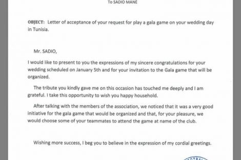 وكشفت أن البادرة تتمثل في إقامة مقابلة استعراضية بمناسبة حفل زفاف نجم ليفربول والمنتخب السنغالي “ساديو ماني”، يشارك فيها مجموعة من لاعبي النادي الاتقليزي إلى جانب نجوم عالميين آخرين يتقدمهم لاعب مانشستر يونايتد بول بوغبا، النجم الكاميروني صامويل إيتو، مهاجم برشلونة عصمان ديمبيلي ولاعب ليون نبيل فقير ونجوم آخرين…