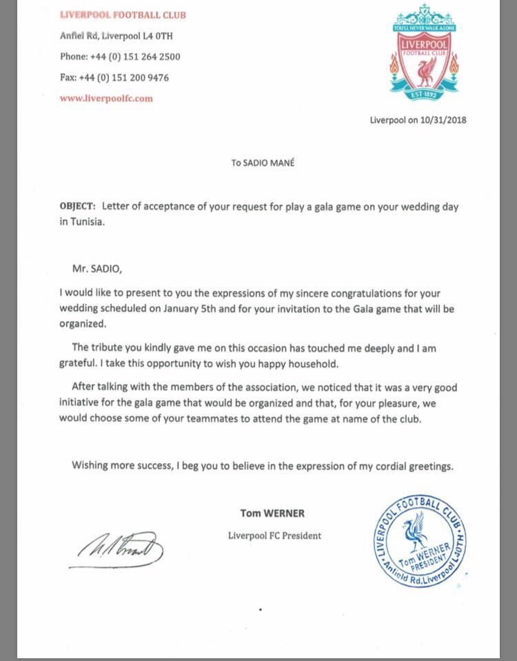 وكشفت أن البادرة تتمثل في إقامة مقابلة استعراضية بمناسبة حفل زفاف نجم ليفربول والمنتخب السنغالي “ساديو ماني”، يشارك فيها مجموعة من لاعبي النادي الاتقليزي إلى جانب نجوم عالميين آخرين يتقدمهم لاعب مانشستر يونايتد بول بوغبا، النجم الكاميروني صامويل إيتو، مهاجم برشلونة عصمان ديمبيلي ولاعب ليون نبيل فقير ونجوم آخرين…