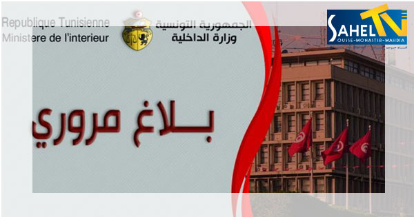 أصدرت وزارة الداخلية اليوم السبت بلاغا مروريا خاصا بنهاية عطلة نصف الثلاثي الأول للسنة الدراسية 2019-2020 نظرا للكثافة التي يمكن أن تشهدها حركة الجولان بعديد الطرقات والمحتور الكبرى.
