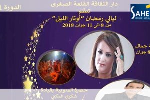 تنظم دار الثقافة بالقلعة الصغرى من 08 جوان إلى 11 جوان 2018 و بمناسبة شهر رمضان المعظم الدورة الحادية عشر من ليال رمضان بعنوان “أوتار الليل”. و...