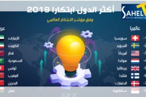احتلت تونس المرتبة الخامسة عربيا في الابتكار متقدمة على المغرب و البحرين وعمان فيما احتلت الإمارات العربية المرتبة الأولى عربيا